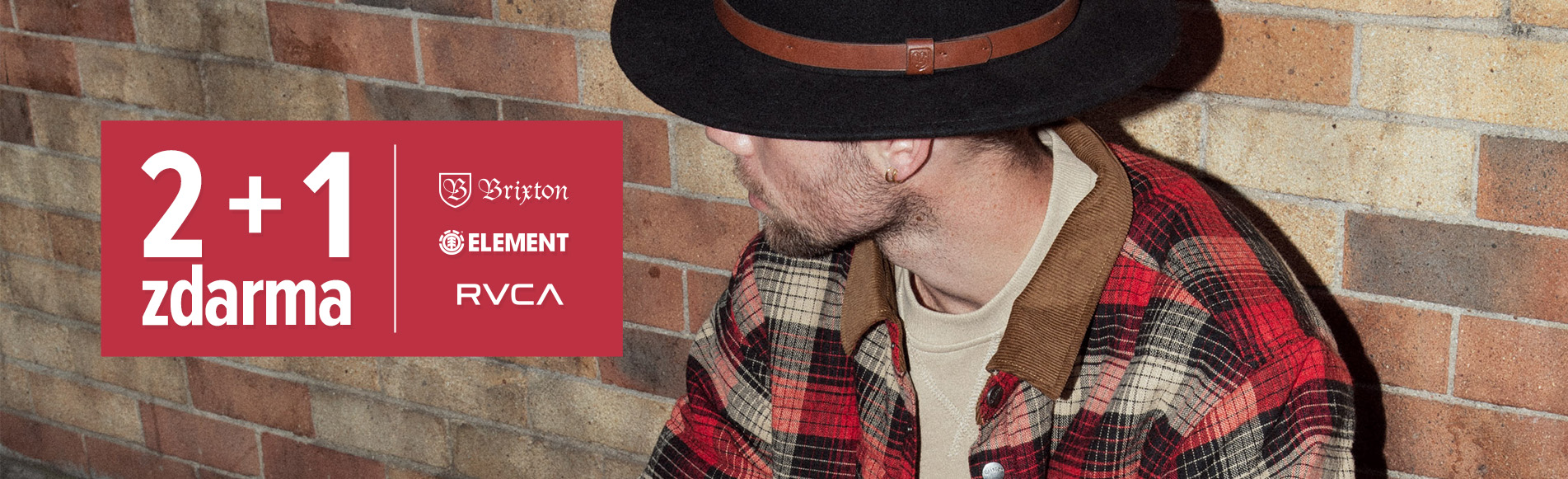 - Přidejte do košíku 3 výrobky Brixton, Element, Vans, Homeboy nebo Santa Cruz. Získáte nejlevnější produkt zdarma!