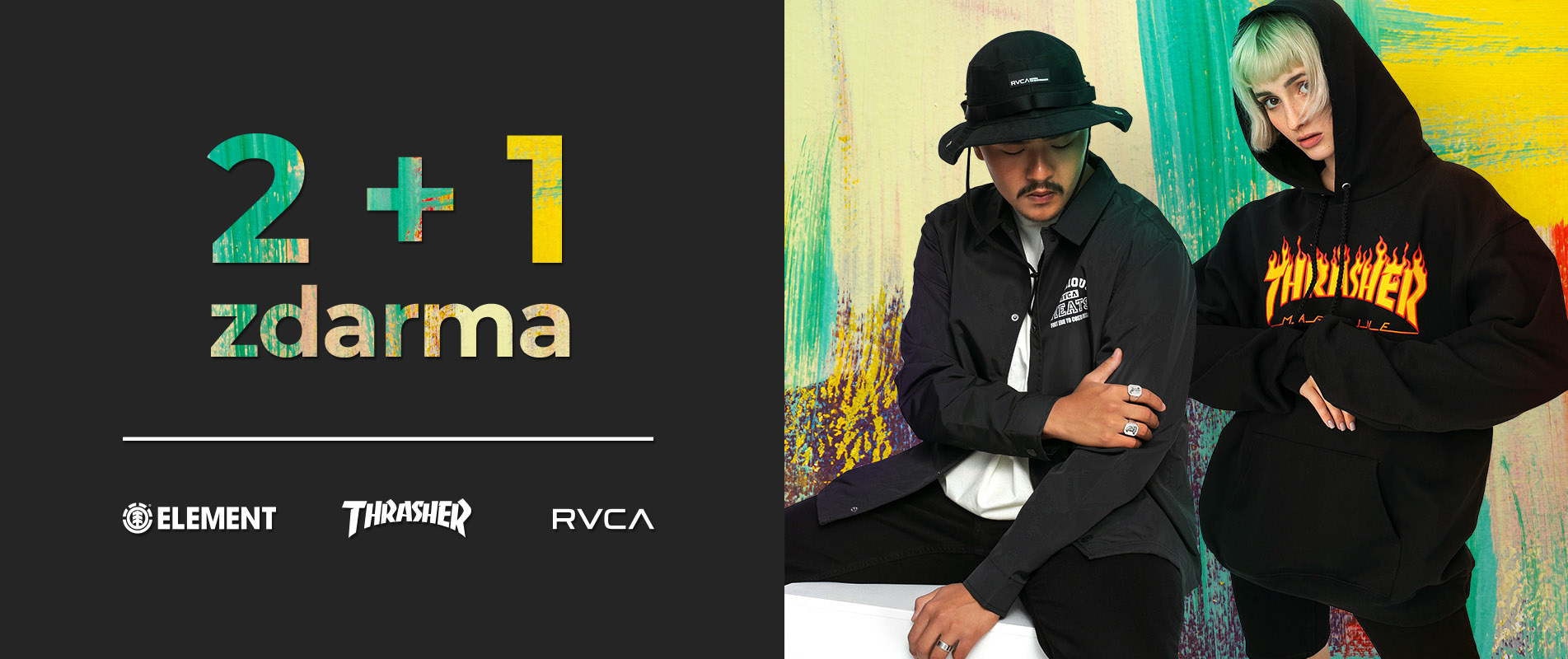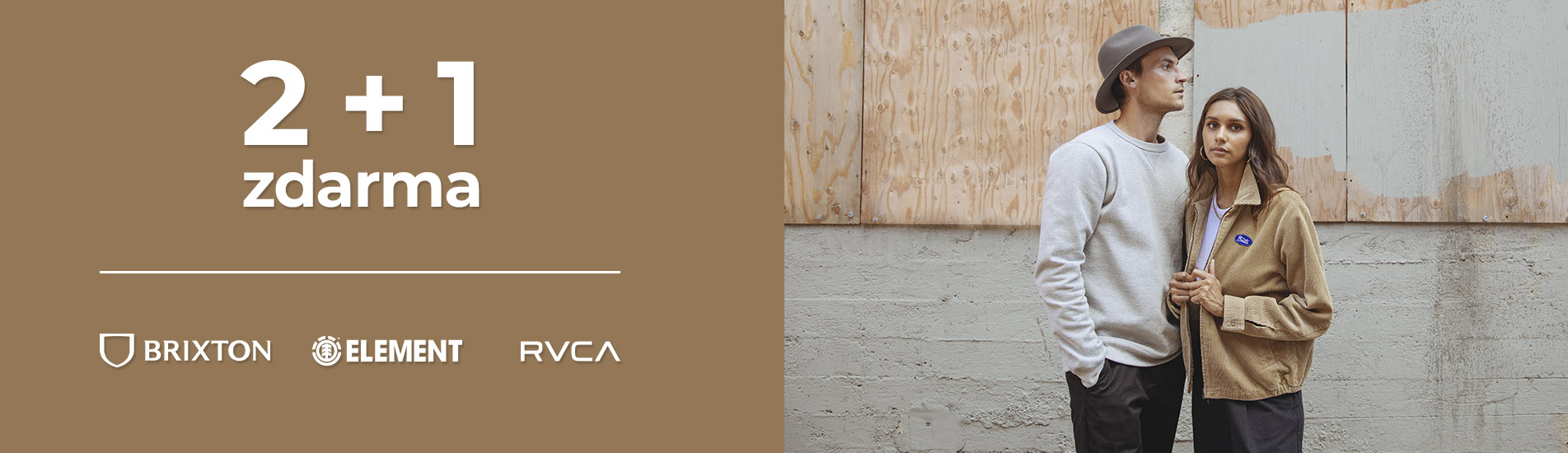 Vyber si libovolné tři produkty od Brixton, Element, Vans, Homeboy nebo Santa Cruz a zaplať pouze za dva! Třetí (nejlevnější) produkt získáš zcela zdarma!
