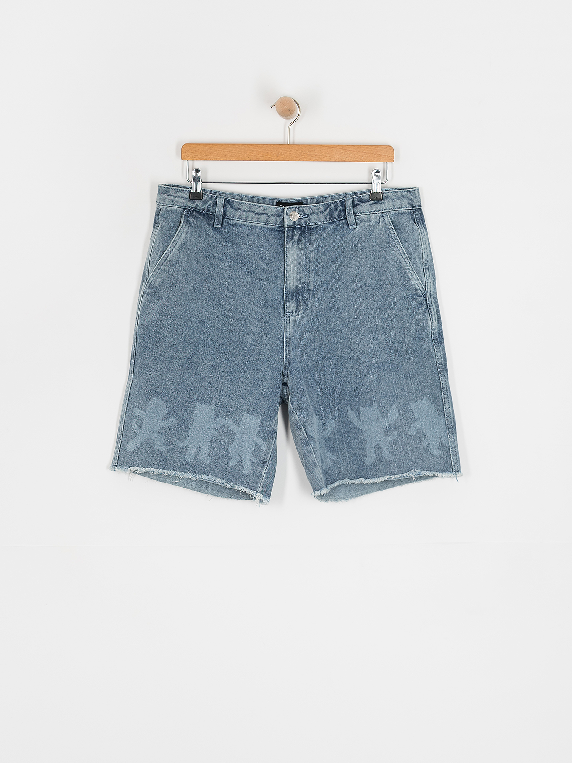 • Roztřepené nohavice, které dodávají šortkám výrazný, mírně opotřebovaný vzhled.