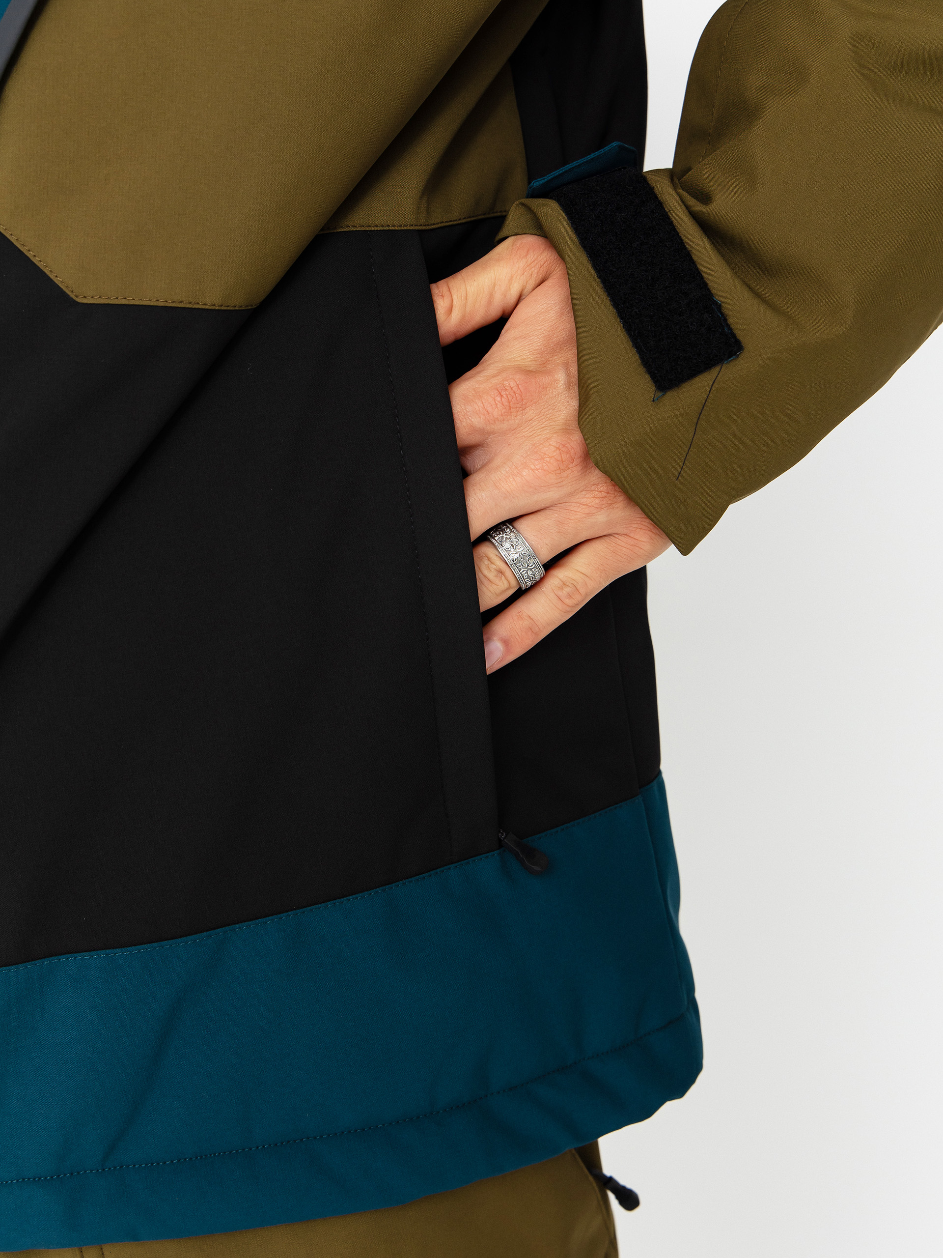 • Boční a náprsní kapsy. Boční a náprsní kapsy se zipy pod klopou, kapsa na skipas, vnitřní síťovaná kapsa